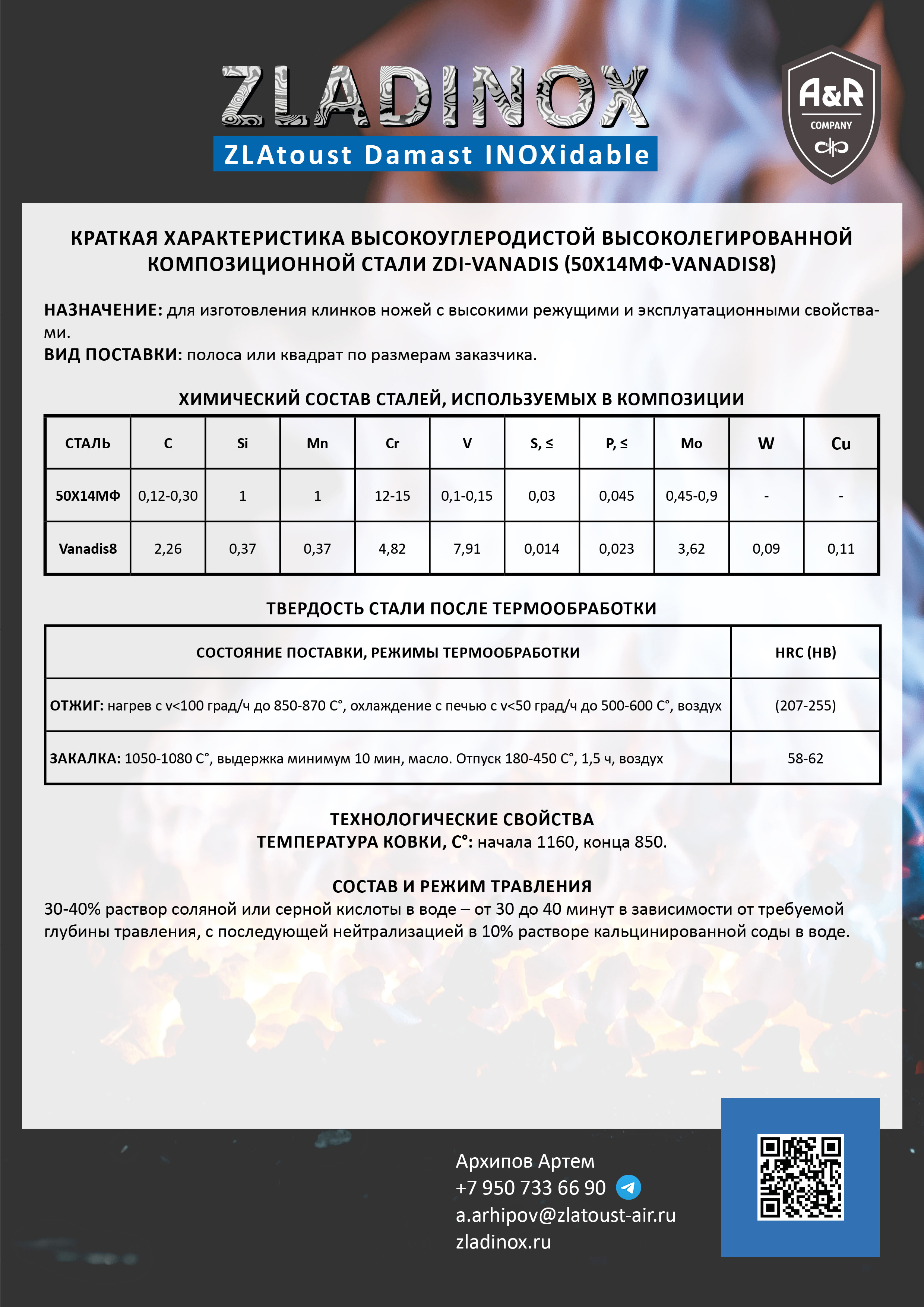 Дамасская сталь ZLADINOX ZDI-Vanadis (узор "ступени")